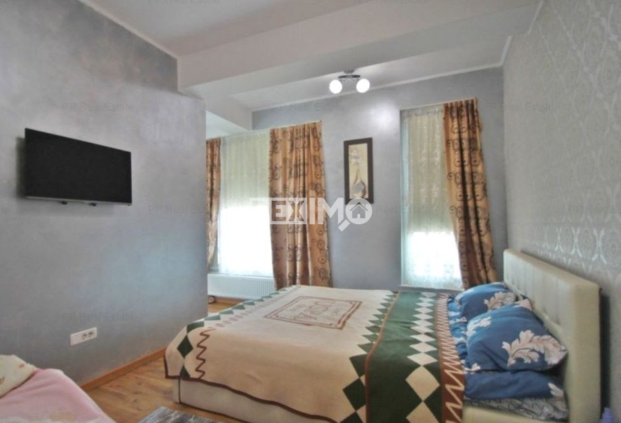 Deximo va prezinta spre vanzare un apartament modern si spatios in suprafata de 69 mp , de 3 camere semidecomandate, situat in Zona Kamsas, la ultimul etaj al unui bloc de 6 etaje cu lift, compartimentat astfel : living, hol, bucatarie, 2 dormitoare, grup sanitar, dispune de finisaje moderne si se vinde mobilat si utilat complet dupa cum se poate vedea in fotografii, dotat cu centrala pe gaze.