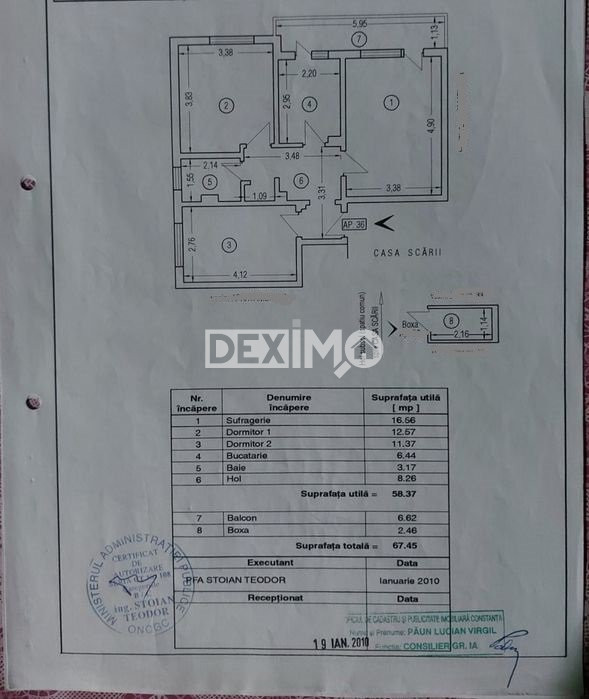 Deximo va prezinta spre vanzare un apartament clasic si spatios in suprafata de 67 mp , de 3 camere decomandate, situat in Zona Km 4-5, la etajul 8 al unui bloc de 10 etaje cu 2 lifturi, compartimentat astfel : living, hol, bucatarie, 2 dormitoare, grup sanitar, balcon, dispune de finisaje clasice si se vinde mobilat si utilat complet dupa cum se poate vedea in fotografii, iar gazele sunt trase pana la aragaz si pana la viitoarea centrala . In pretul imobilului intra si o boxa de 2,50 mp, ideala pentru depozitare.