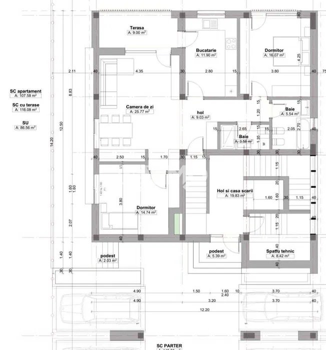 Parter - Apartament 2 - Util (mp) 86.56 Construit (mp) 107.58 + Balcoane (mp) 8.5