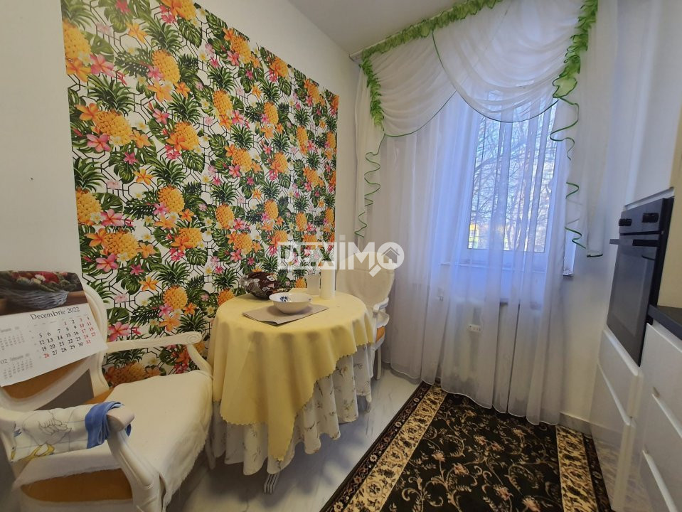 Deximo va prezinta spre vanzare un apartament spatios in suprafata de 58 mp, de 3 camere semidecomandate, situat in Zona Tomis I, aproape de Spitalul Judetean, la etajul 1 al unui bloc de 4 etaje, compartimentat astfel : living, hol, bucatarie complet utilata, dormitor, camera de studiu, grup sanitar, balcon. Locuinta reuneste stilul modern cu cel retro, fiind dotata complet cu mobilier nou, fabricatie Italia imbinat cu mobiler din lemn masiv foarte bine intretinut, ceea ce ii ofera un aer Retro Chic. Imobilul se preda spre vanzare asa cum este prezentat in fotografii, gata de mutare ramanand viitorului proprietar doar sa se conecteze la conducta de gaze naturale care se afla la usa.