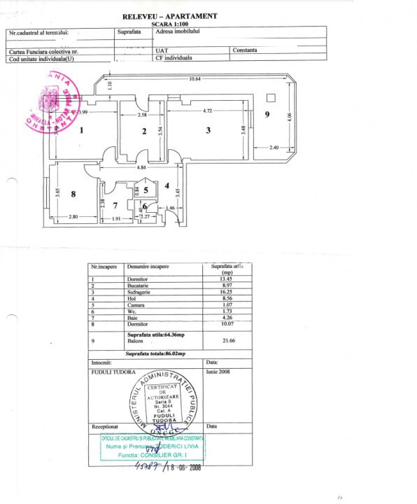 Deximo va prezinta spre vanzare un apartament modern si spatios in suprafata de 86 mp , de 3 camere decomandate, situat pe Soveja aproape de Tomis III, la etajul 1 al unui bloc de 4 etaje. imobilul a fost transformat in 4 camere mutand bucataria pe balcon, compartimentarea actuala fiind urmatoarea : living, hol, 3 dormitoare, 2 grupuri sanitare si bucatarie pe balcon. La interior a fost renovat complet, dispune de finisaje moderne, se vinde cu dormitoarele semimobilate, dotat cu centrala pe gaze si aparat de aer conditionat. Imobilul se afla aproape de supermarketuri, piata, scoli, gradinite, mijloace de transport in comun si deoarece beneficiaza de o suprafata generoasa, este ideal pentru o familie cu copii.