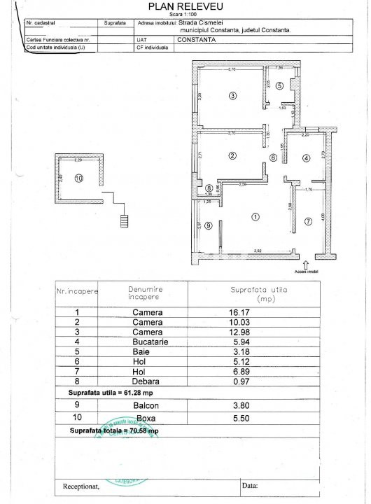 Deximo va prezinta spre vanzare un apartament clasic si spatios in suprafata de 65 mp , de 3 camere circular, situat in Zona Tomis Nord, la etajul 3 al unui bloc de 4 etaje, compartimentat astfel : living, hol, bucatarie, 2 dormitoare, grup sanitar, balcon, dispune de finisaje clasice si se vinde mobilat complet dupa cum se poate vedea in fotografii, iar gazele se afla la usa. In pretul imobilului intra si o boxa in suprafata de 5,50 mp ideala pentru depozitare.