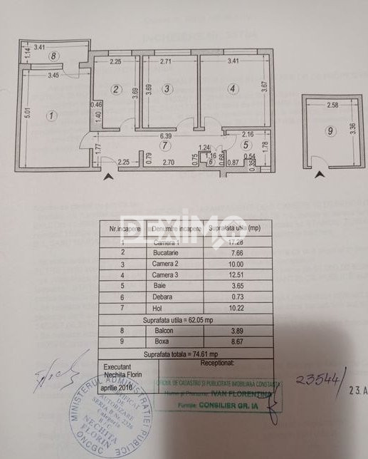 Deximo va prezinta spre vanzare un apartament clasic si spatios in suprafata de 75 mp , de 3 camere decomandate, situat in Zona Tomis Nord - Ciresica, la etajul 4 al unui bloc de 10 etaje cu lift, compartimentat astfel : living, hol, bucatarie, 2 dormitoare, 2 grupuri sanitare, balcon inchis si boxa in suprafata de 9 mp aflata la subsol. La interior dispune de finisaje clasice si se vinde mobilat si utilat complet dupa cum se poate vedea in fotografii, gazele sunt trase la aragaz, iar la ferestre sunt montate rulouri exterioare din aluminiu.