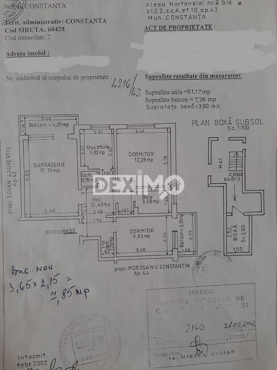 Deximo va prezinta spre vanzare un apartament clasic si spatios in suprafata de 72 mp , de 3 camere decomandate, situat in Zona Tomis Nord, la ultimul etaj al unui bloc de 10 etaje cu lift nou din 2021, compartimentat astfel : living, hol, bucatarie, 2 dormitoare, grup sanitar cu fereastra, 2 balcoane inchise si amenajate, dispune de finisaje clasice si se vinde mobilat si utilat complet dupa cum se poate vedea in fotografii, iar gzele se afla la usa. Imobilul este acoperit partial de camera tehnica si cele doua uscatoare aflate deasupra blocului, si beneficiaza de o boxa intabulata de 4 mp aflata la subsol.