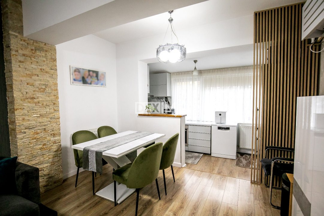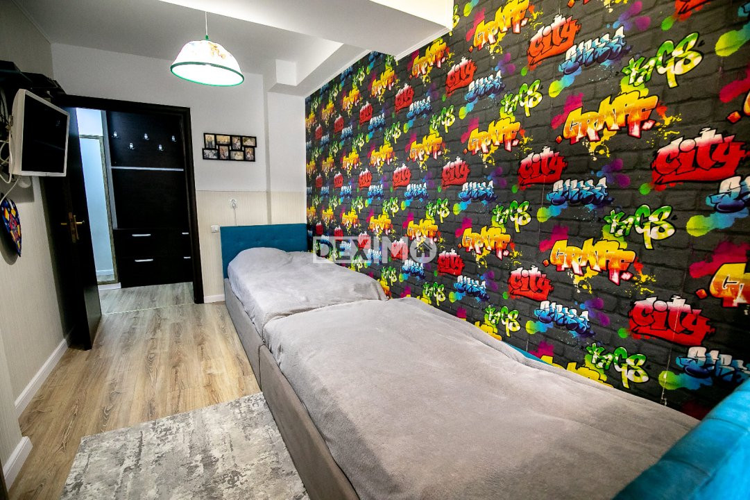 Deximo va prezinta spre vanzare un apartament modern si spatios in suprafata de 80 mp, de 3 camere decomandate, situat in Zona Tomis Plus, parterul unui bloc de 5 etaje cu lift, compartimentat astfel : living, hol, bucatarie, 2 dormitoare, grup sanitar, balcon si beci cu intrare din bucatarie. Bucataria si beciul au fost executate cu autorizatie de construire. La inteiror, dispune de finisaje premium, se vinde mobilat si utilat complet (Masina de spalat vase Bosch, Masina de spalat haine Bosch, Masina de uscat rufe Samsung, Combina frigorificare Liebherr, 3 televizoare smart de ultima generatie 2 LG si 1 Samsung, Cuptor electric Whirpool, Hota de mare putere Whirpool etc.) dupa cum se poate vedea in fotografii, dotat cu centrala pe gaze si aparat de aer conditionat. Locuinta beneficiaza de un loc de parcare privat situat in fata blocului si boxa exact langa usa apartamentului.