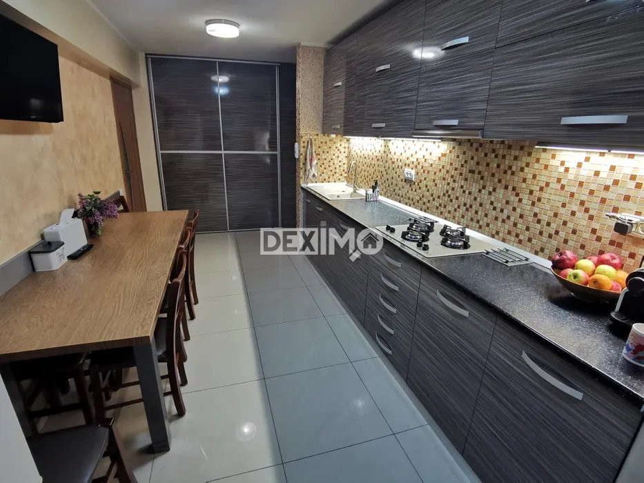 Deximo va prezinta spre vanzare un apartament modern si spatios in suprafata de 86 mp, de 4 camere decomandate, situat in Zona Km 5, la ultimul etaj al unui bloc de 4 etaje, compartimentat astfel : living, hol, bucatarie, 3 dormitoare, 2 grupuri sanitare, balcon generos cu debara. La interiror a fost renovat in totalitate ( (instalația electrica, sanitara, șape, tencuieli, tavane rigips izolate, parchet, gresie), dispune de finisaje moderne si se vinde mobilat si utilat complet dupa cum se poate vedea in fotografii, dotat cu centrala pe gaze Vaillant Turbotec Plus si 2 aparate de aer conditionat . Locuinta dispune de o boxa ideala pentru depozitare aflata la subsol, iar hidroizolatia blocului a fost refacuta in totalitate in 2021.