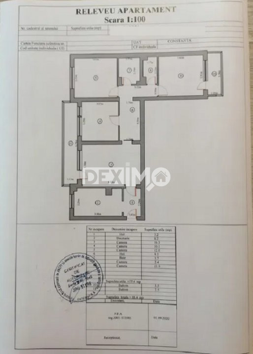 Deximo va prezinta spre vanzare un apartament clasic si spatios in suprafata de 88 mp, de 4 camere semidecomandate, situat in Zona Tomis Nord, la ultimul etaj al unui bloc de 4 etaje, compartimentat astfel : living, hol, bucatarie, 3 dormitoare, grup sanitar cu posibilitatea crearii unui al doilea si 2 balcoane. La interior, dispune de finisaje clasice, se vinde partial mobilat, dotat cu centrala pe gaze si aparat de aer conditionat. Locuinta beneficiaza de un loc de parcare rezervat de la primare, ce se poate transmite viitorului proprietar.