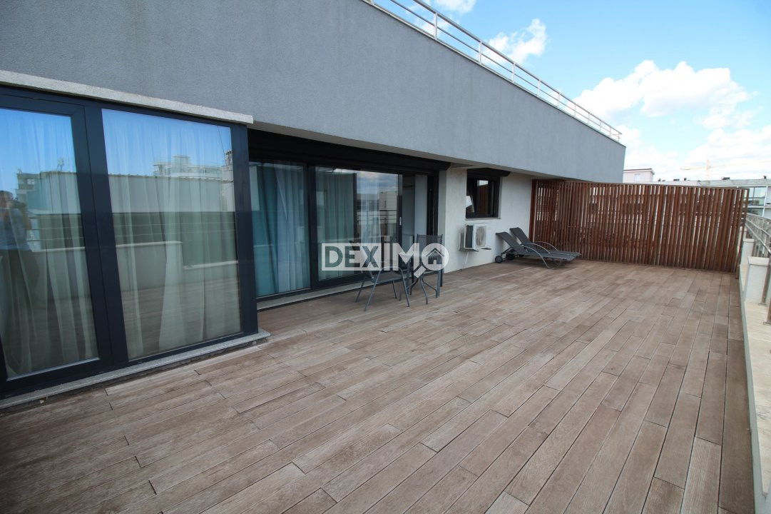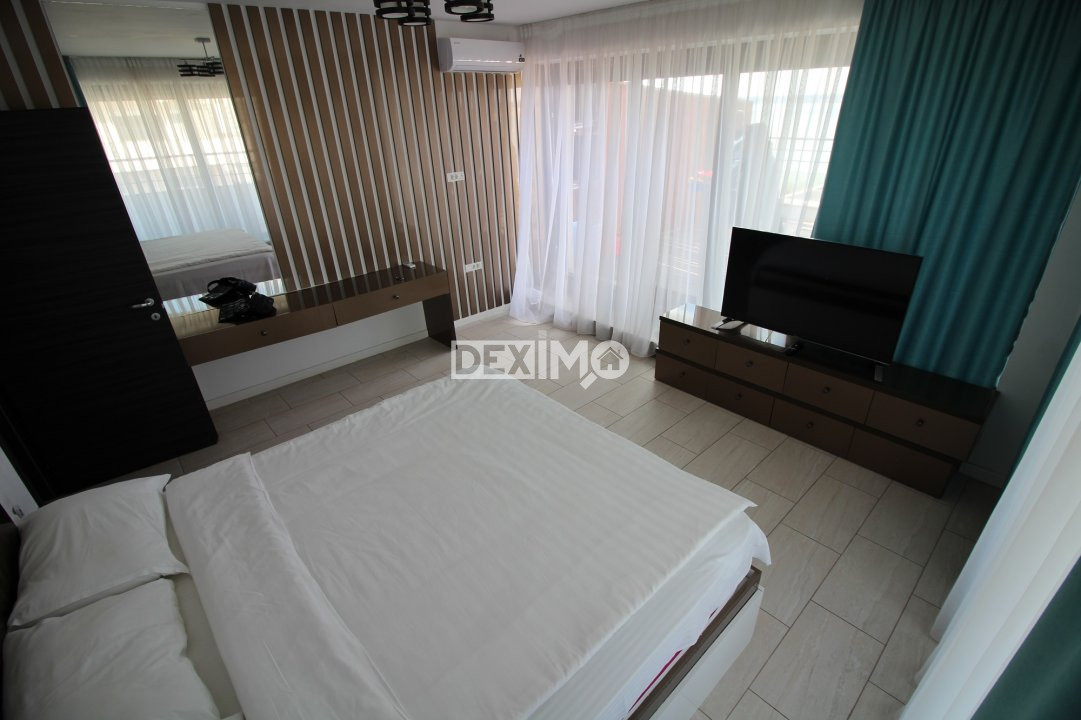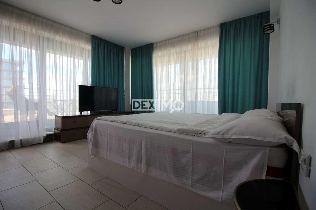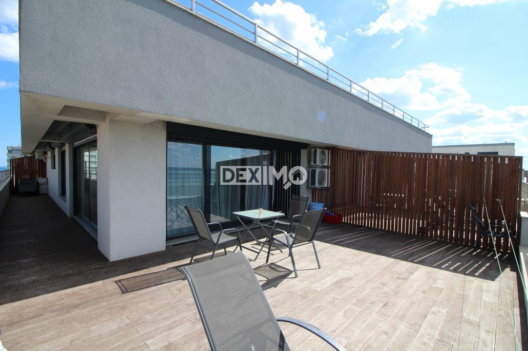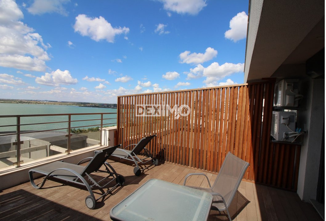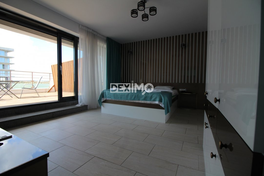 Deximo va prezinta spre vanzare o proprietate exclusivista, un intreg ultim etaj al unui bloc nou de 7 etaje cu lift, situat in Mamaia Nord, langa Hotel Opera, cu o vedere superba catre lac. Proprietatea are o suprafata de 406 mp totali, fiind la origine compus din 2 apartamente de 3 camere, si actualmente transformat in : 5 studiouri cu terase amenajate si 1 apartament de 2 camere cu terasa spatioasa amenajata. Locuintele dispun de finisaje moderne si se vand mobilate si utilat ecomplet dupa cum se poate vedea in fotografii, dotate cu centrala pe gaze, incalzire in pardoseala si apartate de aer conditionat.