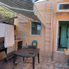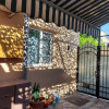 Locuinta beneficiaza de o curte amenajata cu gresie de exterior, chiuveta, loc de luat masa si pergola retractabila.