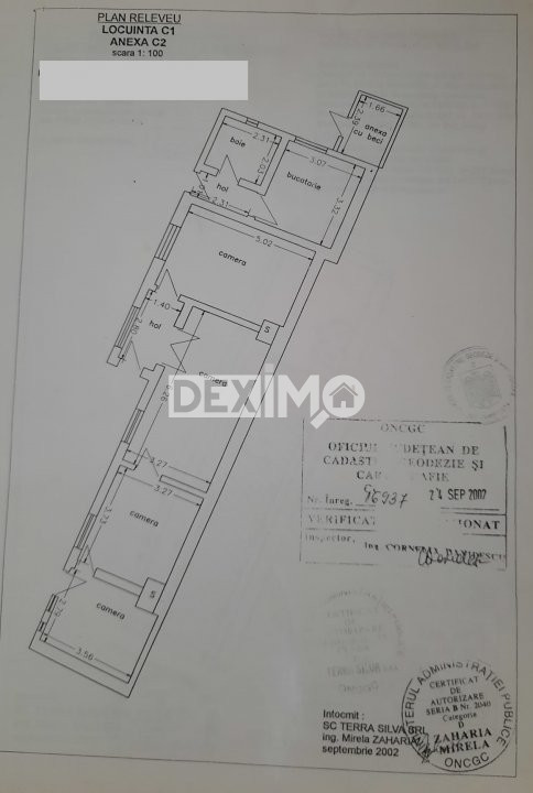 Deximo va prezinta spre vanzare o casa la sol, situata in Coiciu, pe un teren de 217 mp cu un front stradal de 7 ml, constructie piatra betonata, 3 pereti interiori din chirpuc si constructie extinsa din bca. Locuinta are o suprafata utila de 107 mp, compusa din 4 camere, compartimentate astfel : living, 3 dormitoare, doua holuri, baie, bucatarie, baie de serviciu. La interior dispune de finisaje de actualitate, se vinde partial mobilata si este dotata cu centrala pe gaze si aparat de aer conditionat. Casa este renovata in proportie de 80% : izolata la exterior, acoperis nou si beneficiaza de o curte spatioasa pavata, amenajata cu foisor si bucatrie de vara.