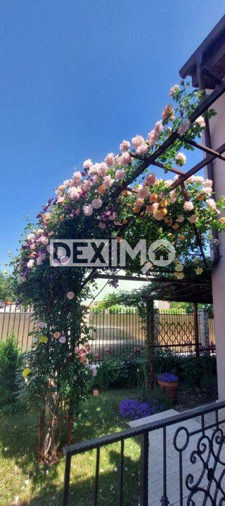 Proprietatea beneficiaza de o curte amenajata cu dale, terasa cu gratar, pergola si gradina cu plante mature si este dotata cu sistem de alarma si supraveghere video.