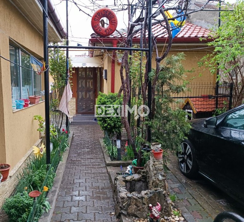 Imobilul dispune de o curte spatioasa unde se regaseste o magazine, bolta de vita de vie, dar si un loc de parcare pentru o masina.
