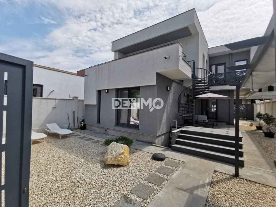 Deximo va prezinta spre vanzare o casa P+1 situata in Zona Compozitori, amplasata pe un teren in suprafata de 300 mp cu un front stradal de 12.5 ml. Constructia a fost edificata in 2016 din BCA si grinzi de beton, are o suprafata utila de 188 mp compusa din 5 camere, 3 grupuri sanitare, 2 intrari, dotata cu centrala proprie cu incalzire in pardoseala. La interior, dispune de finisaje Premium, se vinde mobilata si utilata complet. Avand o constructie solida iar Regimul de inaltime al zonei fiind de P+3 Etaje, imobilul se poate supraetaja fara probleme. Locuinta beneficiaza de o curte spatioasa, amenajata cu trotuare pavate, terasa, un beci in suprafata de 22 mp cu intrare din exterior si un put forat ideal pentru intertinerea spatiului verde.