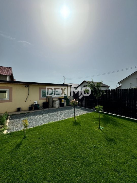 Proprietatea beneficiaza de o curte spatioasa, amenajata cu trotuare bentoante si spatii verzi.