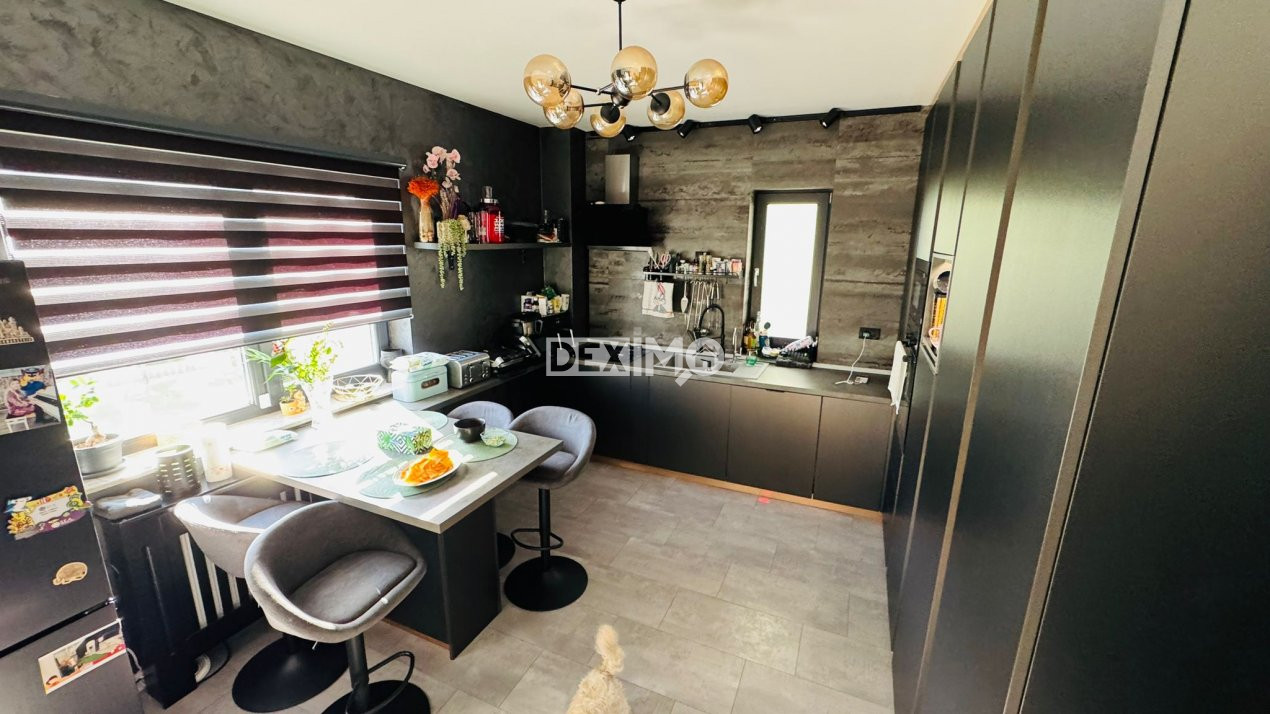Bucătăria închisă, complet mobilată și utilată cu electrocasnice premium, oferă atât eleganță, cât și eficiență în utilizare.
