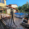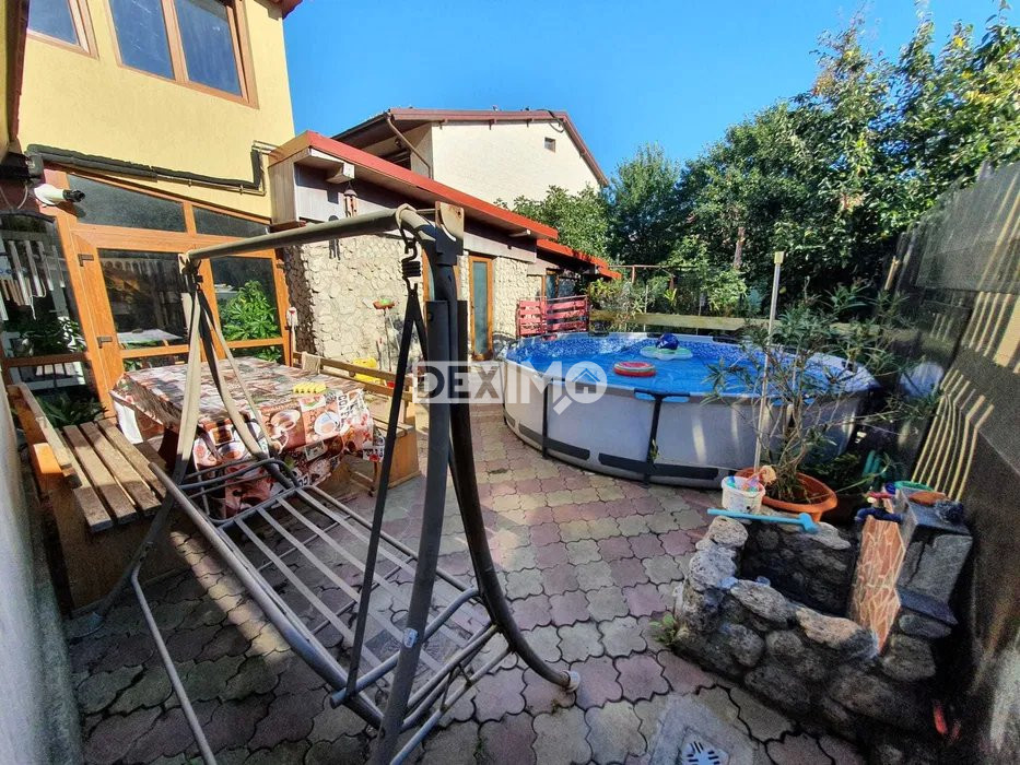 Casa Beneficiaza de o curte spatioasa, amenajata cu trotuare pavate, loc de luat masa, gradina cu pomi fructiferi, in care se mai gasesc 3 magazii ideale pentru depozitare.