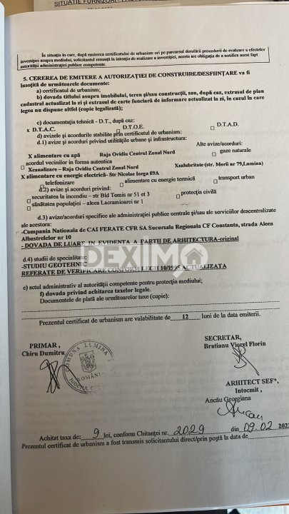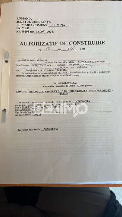 Deximo va prezinta spre vanzare un teren in suprafata de 456 mp cu un front stradal de 27 mp la strada aflatata, situat in Lumina, la cativa km de Constanta. Terenul beneficiaza de Certificat de Urbanism si Autorizatie de Construire pentru edificarea unei locuinte Duplex P+1. In anunt veti regasi toata documentatia aferenta.